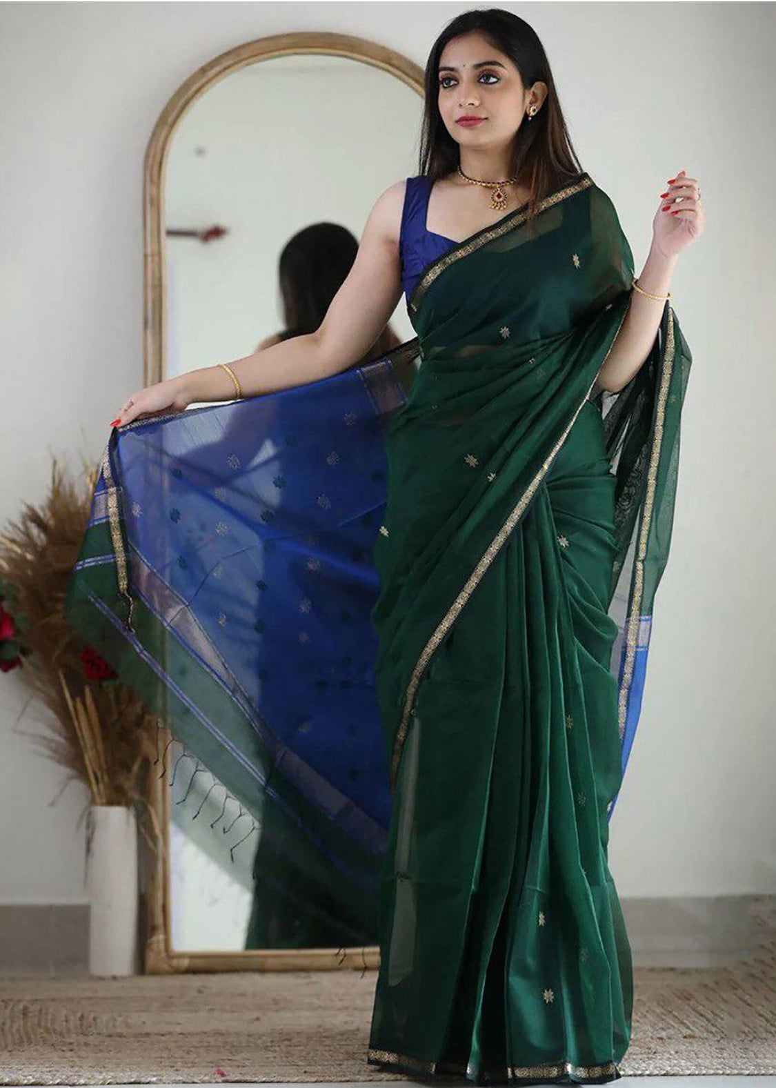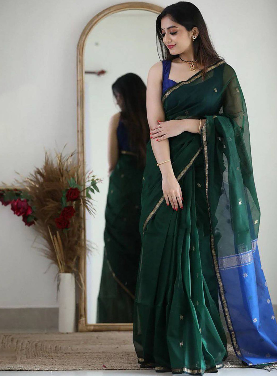 Featuring intricately woven patterns, these sarees embody understated elegance, making them ideal for both everyday wear and special occasions. The fabric is lightweight yet structured, allowing for easy draping while maintaining a graceful silhouette.