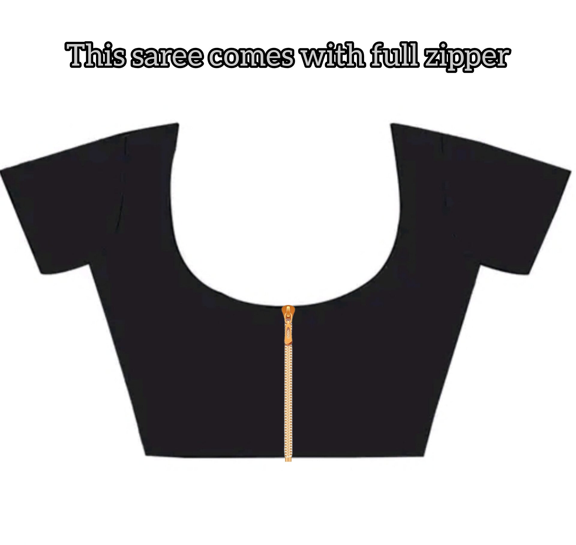 Step into elegance with our revolutionary Zip and Go Saree! This stylish, one-piece wonder features a full lining and a convenient front-opening zipper for effortless draping and ultimate comfort. With its unique twist on traditional attire, this saree is sure to make you stand out from the crowd.