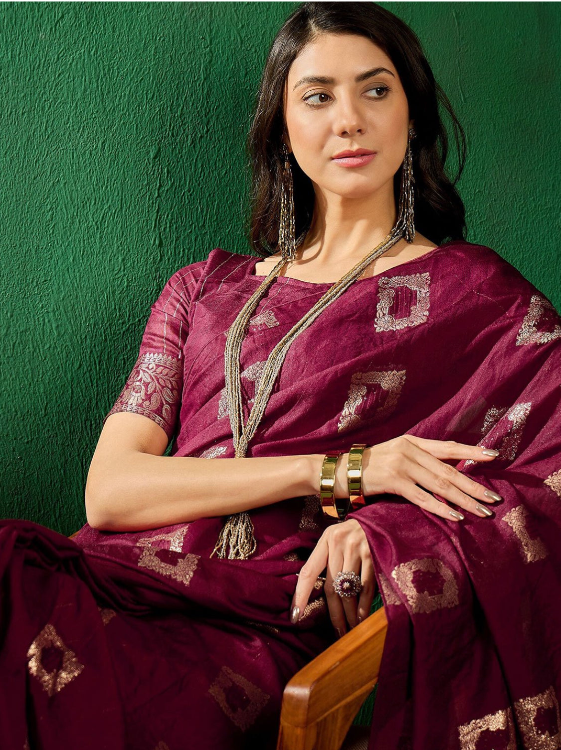 Featuring intricately woven patterns, these sarees embody understated elegance, making them ideal for both everyday wear and special occasions. The fabric is lightweight yet structured, allowing for easy draping while maintaining a graceful silhouette.