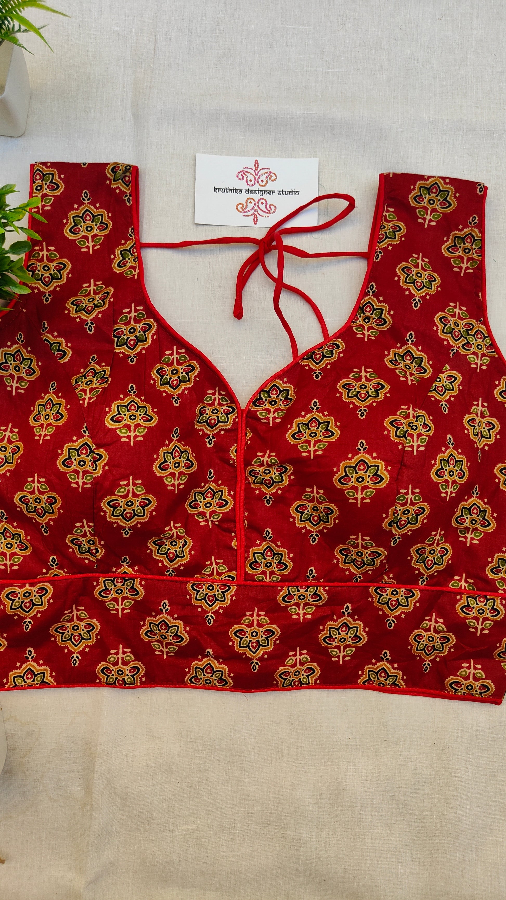 At Kruthika Designer studio we don’t believe in mass production. Each blouse is crafted with intention—making it a one-of-a-kind piece that truly reflects your personality and preferences.