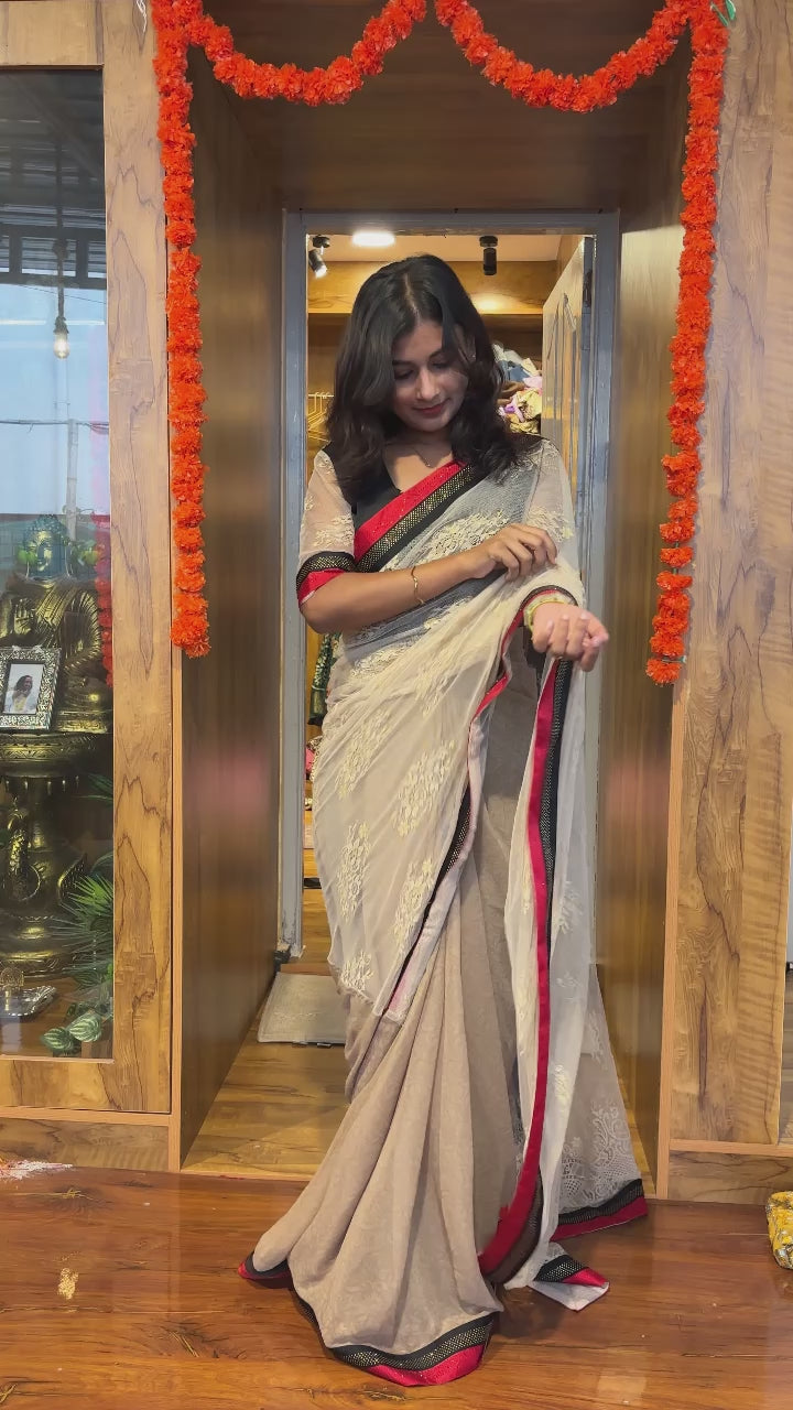 Step into elegance with our revolutionary Zip and Go Saree! This stylish, one-piece wonder features a full lining and a convenient front-opening zipper for effortless draping and ultimate comfort. With its unique twist on traditional attire, this saree is sure to make you stand out from the crowd.