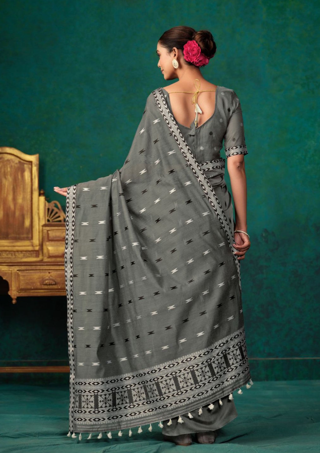 Featuring intricately woven patterns, these sarees embody understated elegance, making them ideal for both everyday wear and special occasions. The fabric is lightweight yet structured, allowing for easy draping while maintaining a graceful silhouette.