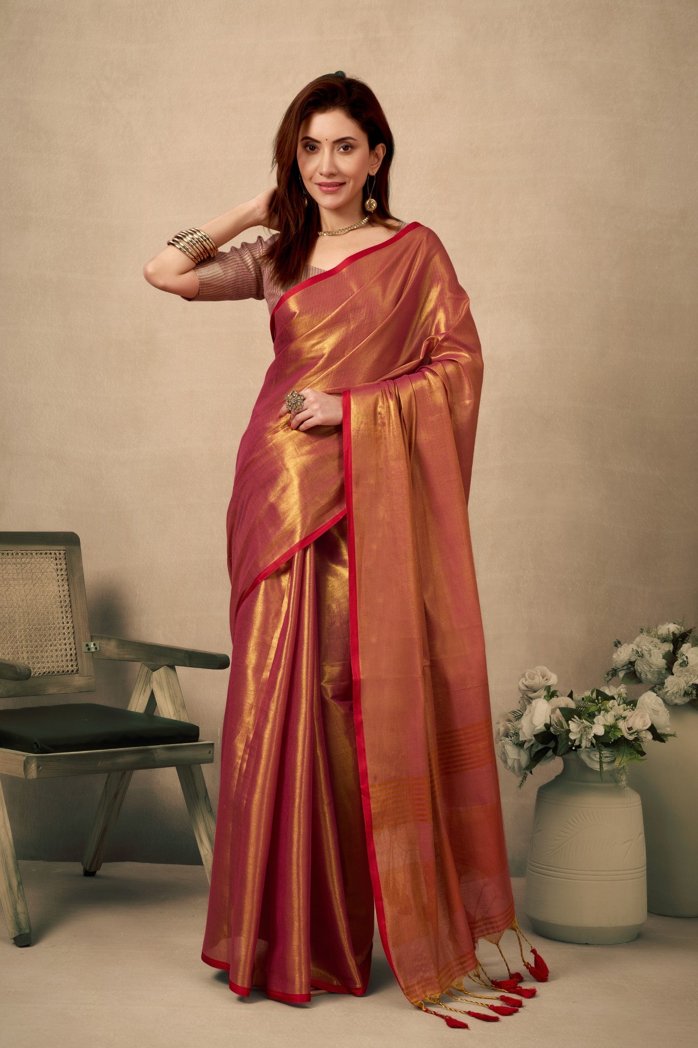 Experience the perfect harmony of comfort and class with our mulraga tissue Sarees. Crafted from a premium tissue offer the best of both worlds — softness, durability, and a sophisticated drape.