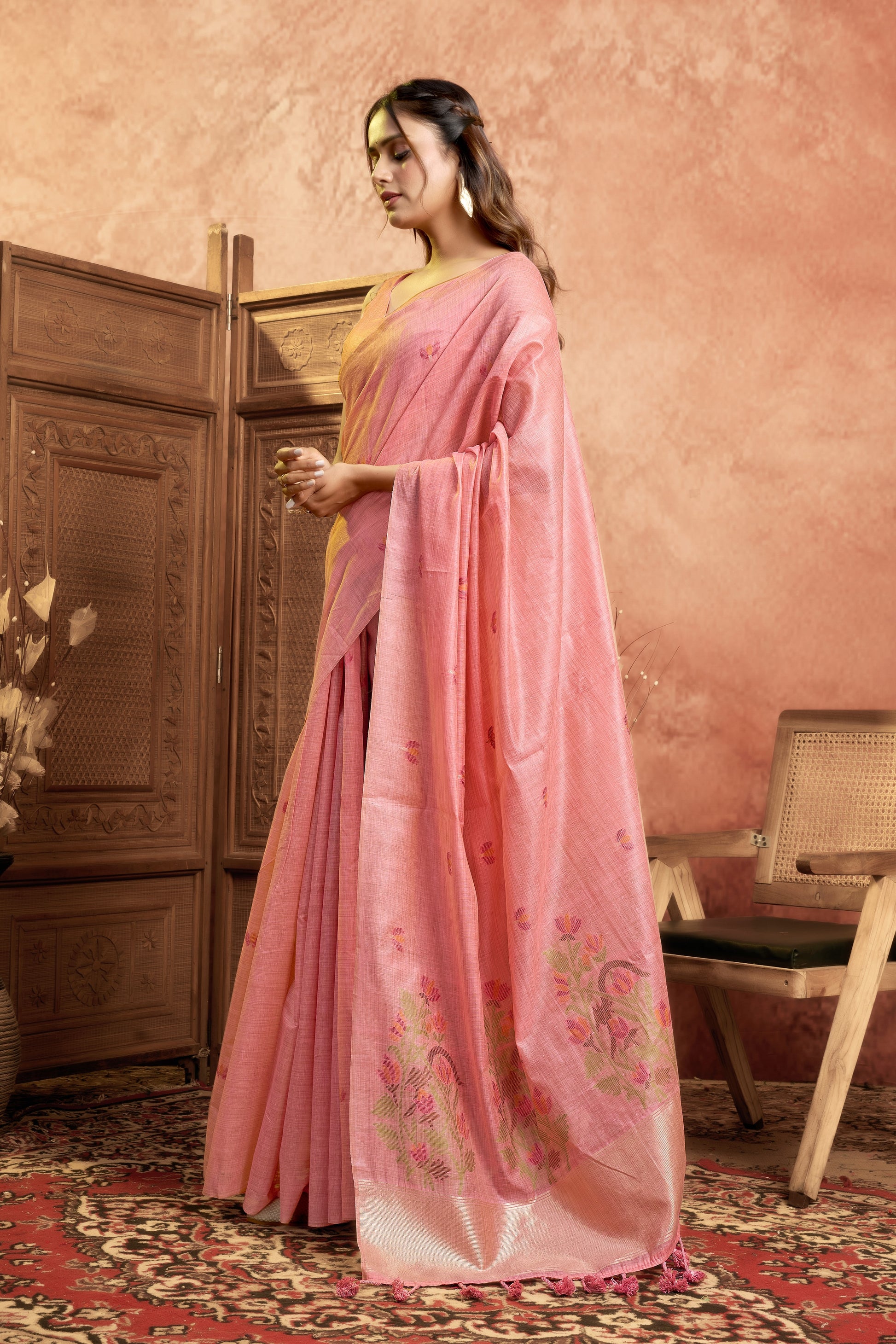 Experience the perfect harmony of comfort and class with our Cotton-Linen Blended Woven Sarees. Crafted from a premium fusion of breathable cotton and naturally textured linen, these sarees offer the best of both worlds — softness, durability, and a sophisticated drape.