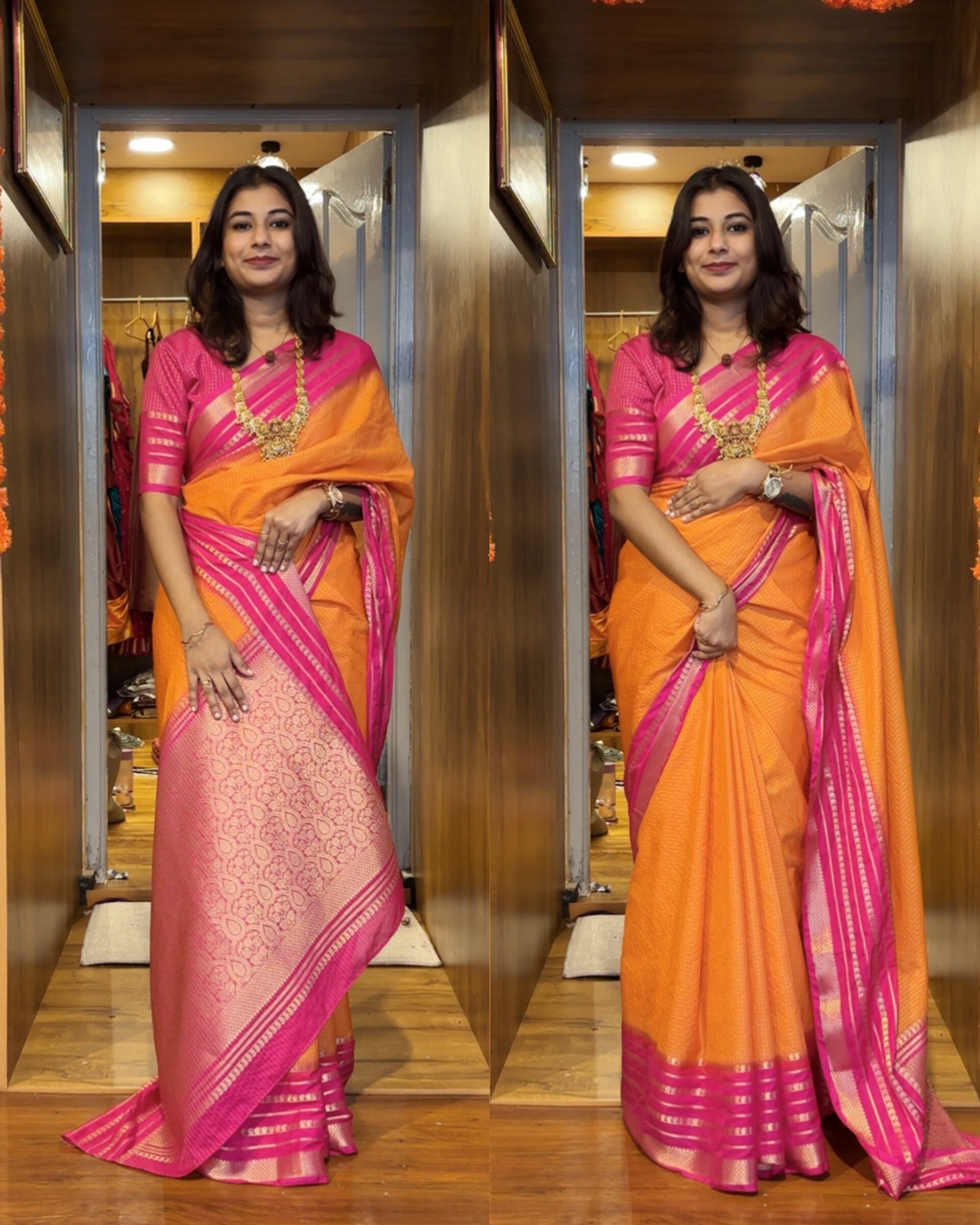 Step into elegance with our revolutionary Zip and Go Saree! This stylish, one-piece wonder features a full lining and a convenient front-opening zipper for effortless draping and ultimate comfort. With its unique twist on traditional attire, this saree is sure to make you stand out from the crowd.