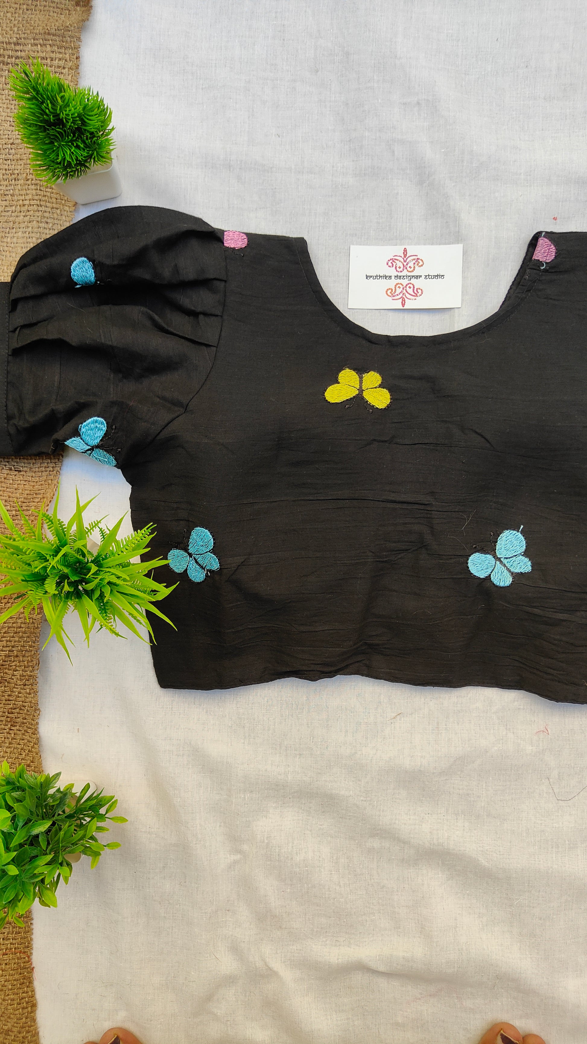 At Kruthika Designer studio we don’t believe in mass production. Each blouse is crafted with intention—making it a one-of-a-kind piece that truly reflects your personality and preferences.