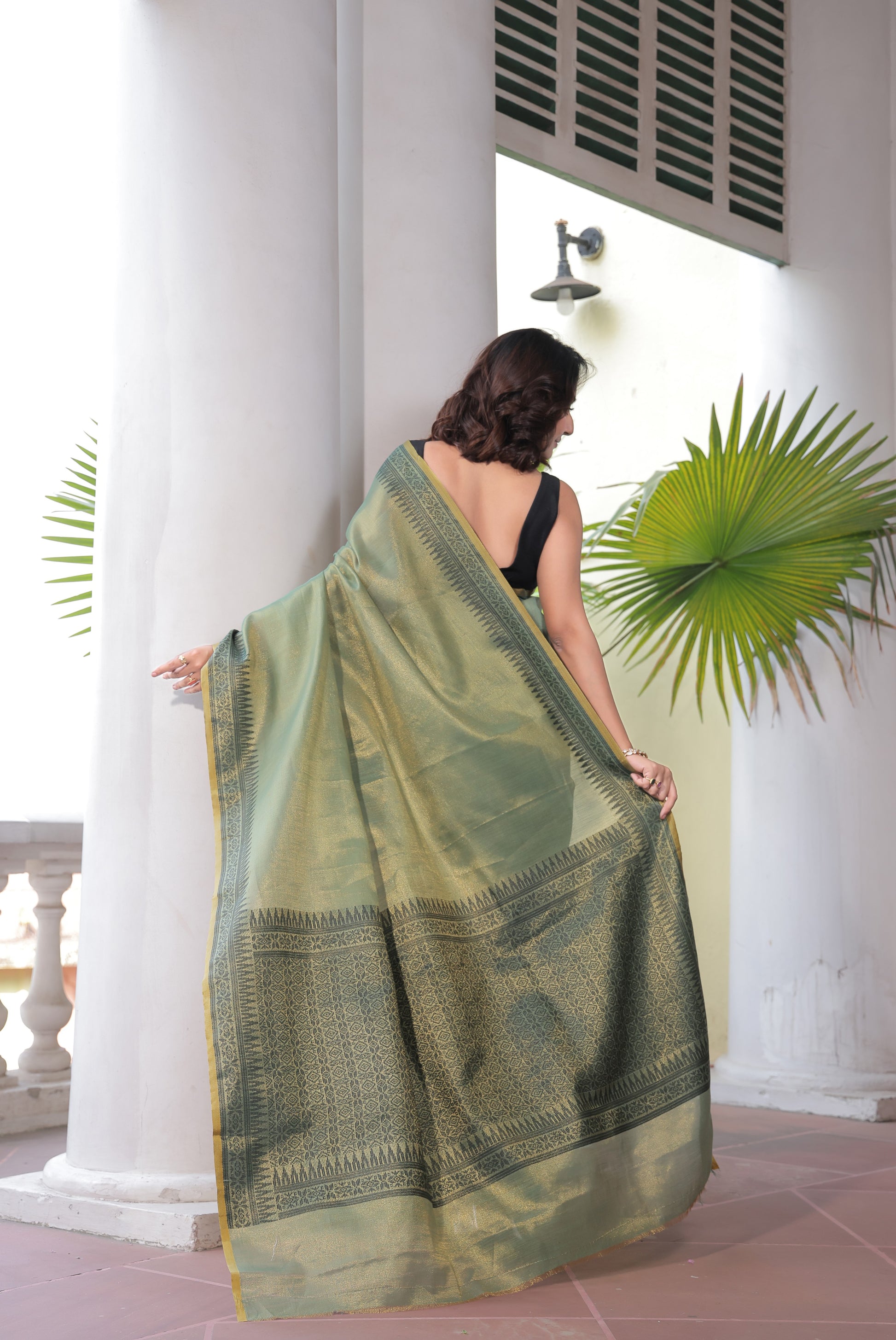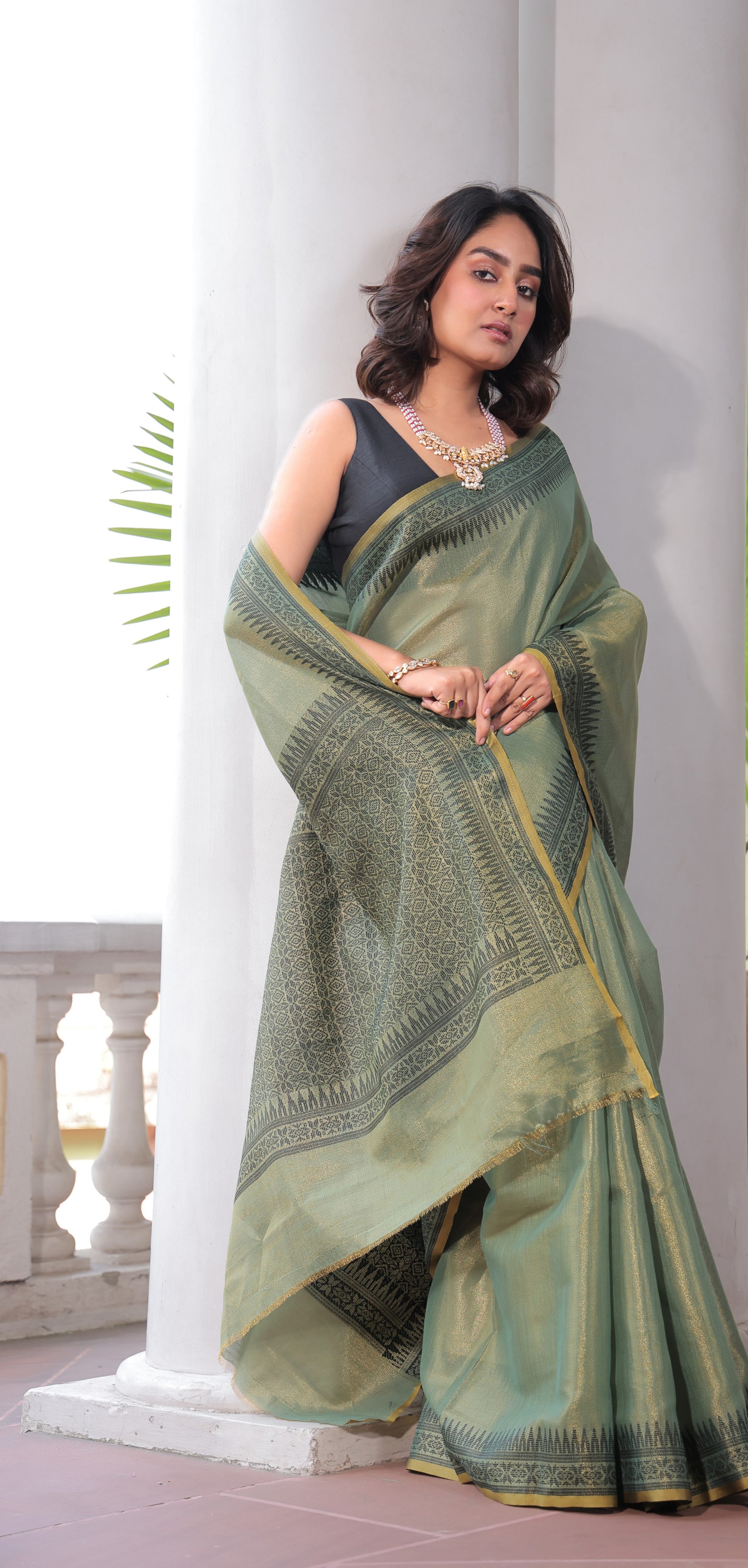 Featuring intricately woven patterns, these sarees embody understated elegance, making them ideal for both everyday wear and special occasions. The fabric is lightweight yet structured, allowing for easy draping while maintaining a graceful silhouette.